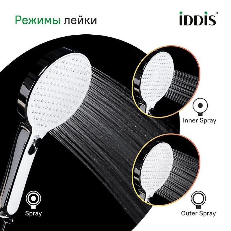 • Переключение режимов осуществляется красивой удобной кнопкой. Кнопка не утоплена, а чуть выступает над поверхностью лейки – чтобы было комфортно, в том числе, девушкам с длинными ногтями.